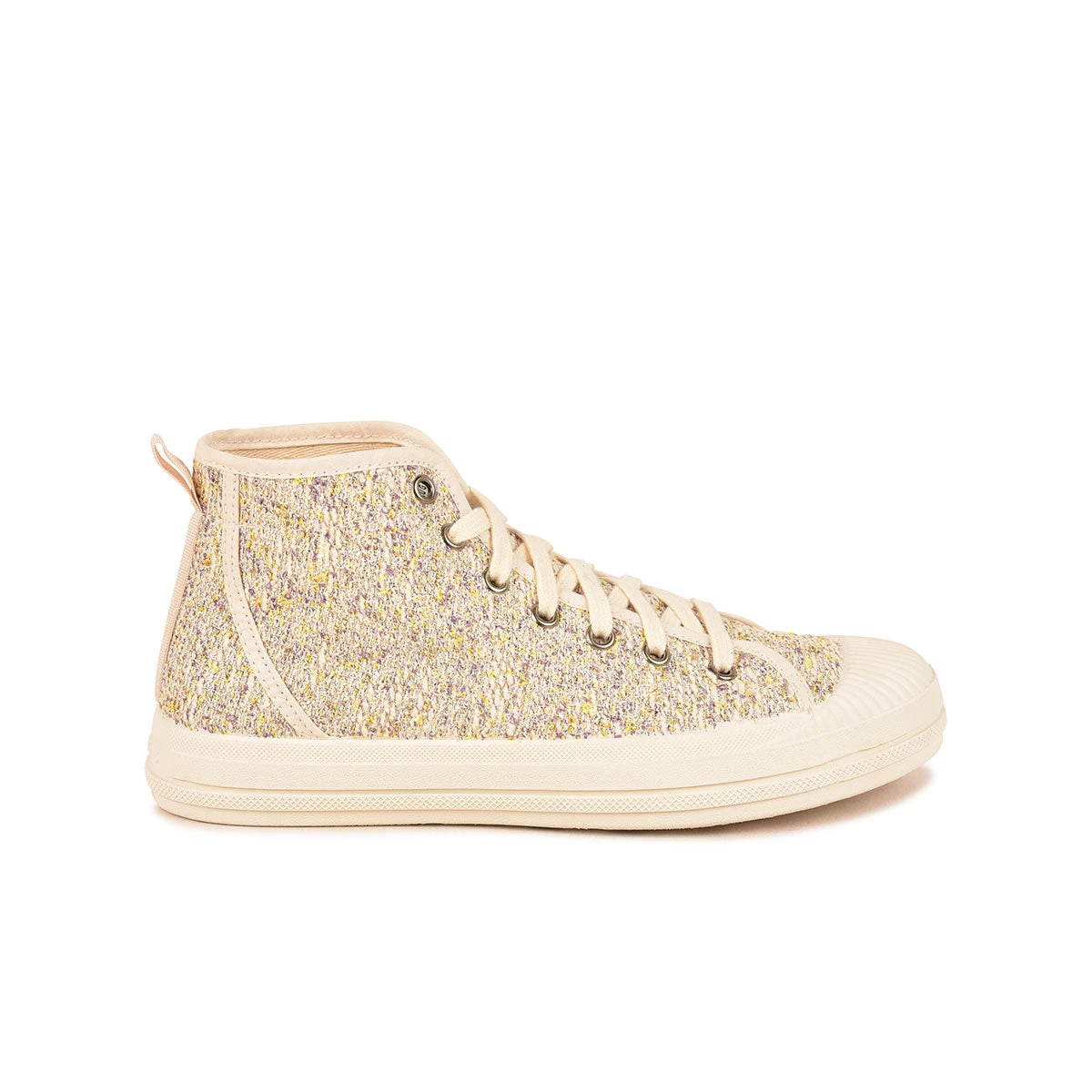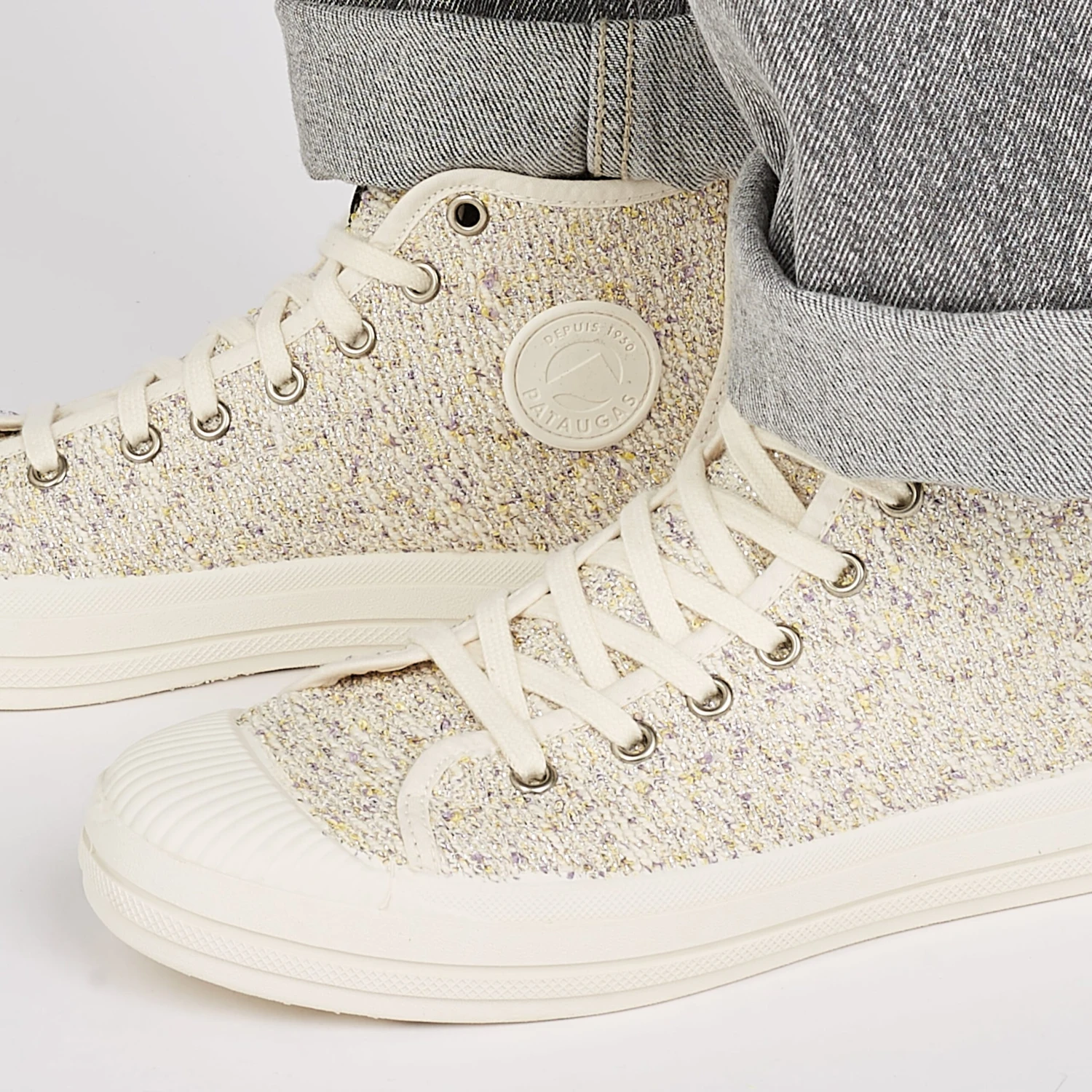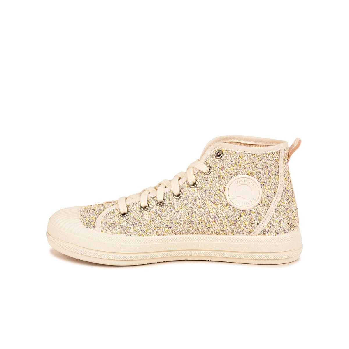 DĂ©couvrez notre basket femme ETCHE avec un tout nouveau tissus bouclette raffinĂ© tissĂ© en Espagne inspirĂ© des codes du design et de l’ameublement, le jeu de fils multicolore dĂ©licat apporte douceur et sophistication couleur lilas. Cette basket en coton recyclĂ© est trĂšs tendance, vous apportera confort et lĂ©gĂšretĂ© lors de vos balades estivales grĂące Ă sa tige haute et sa semelle striĂ©e. MontĂ©e sur une semelle en caoutchouc naturel, permet Ă cette une basket d’ĂȘtre plus flexible et plus souple. Petit plus, sa semelle intĂ©rieure est amovible ce qui est trĂšs pratique si vous souhaitez y placer les vĂŽtres.